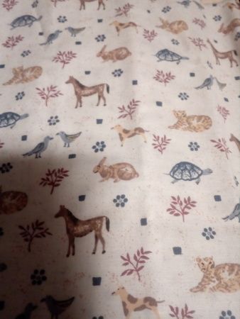 Tilkkutyökangas. Puuvillaa. Kankaan koko noin 30*50cm.