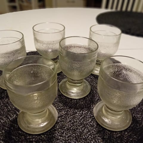 Käytetty ehjä kunto, yhden lasin reunassa valuvika, ei ole rikki eikä huomaa helposti. Nouto Karakallio Espoo.