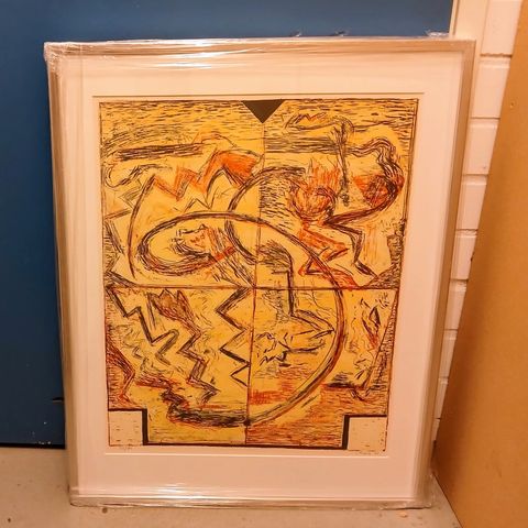 Maalaus ja kehykset ovat hyvässä kunnossa.