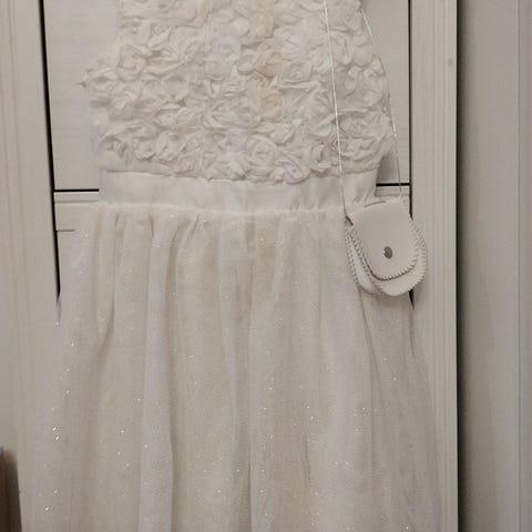 Tyttöjen juhla asu, johon kuuluu pusero, liivi, kietaisuhame ja esiliina( esiliina samanvärinen kuin itse hame, sopii n. 7-10 vuotiaalle tytölle