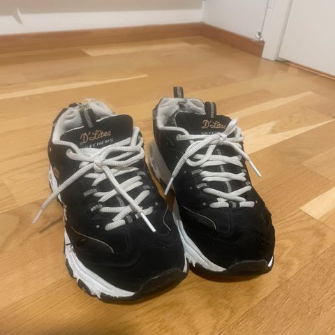 Mustat, mokkaiset, kiilakorkoiset Skechersin nilkkurit. Koko 37.