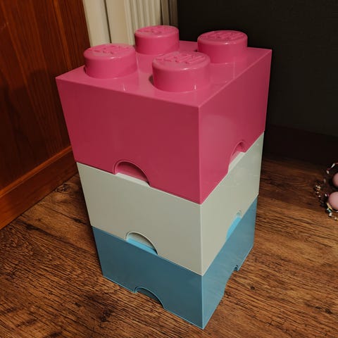 Lego säilytyslaatikot korkeus noin 25cm, puhtaita lastenlegot tulleet näissä ja sen jälkeen olleet hyllyssä. Kivoja kaikenlaisten legojen säilyttämiseen. 7 euroa kappale