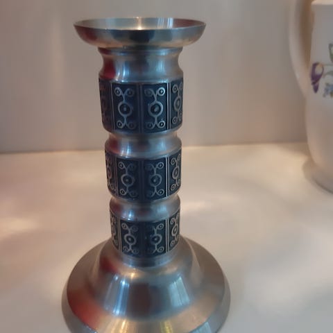 Messingistä valamalla tehty 20 senttinen kynttelinjalka.