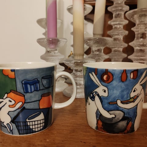 Myydään Arabia Pupumuki Viherpeukalopuput, Heljä Liukko-Sundström. Käyttämätön, kunto erinomainen, tarra paikallaan.