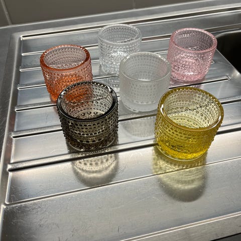 Iittalan kastehelmi tuikkukipot ja väri rain - sade! (kuvissa näkyy tiedot ym)
