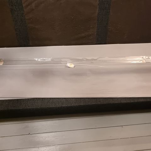 Kuvan käytetty ilmeisesti Katve kaihdinliikkeen aikanaan valmistama rullaverho. Ikäisekseen hyväkuntoinen. Säilytetty vuosikymmenet rullalla joten vaatii tuuletuksen avonaisena ja pölyjen pyyhinnän. Kiinnikkeitä en löytänyt mutta sopii normi kiinnikkeisiin. Leveys noin 160 cm. Korkeus reilu 2 metriä.