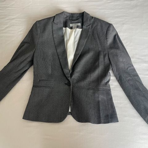 Myytävänä jakkupuku kokoa 36. Jakkupukuun kuuluu myös hame. Jakkupuvun hinta on 3 euroa.