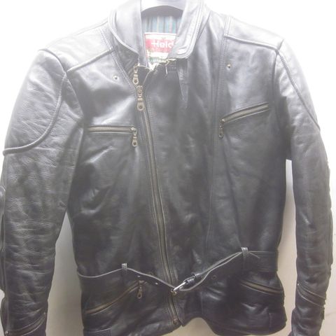 Valmiiksi patinoitunut, paksua nahkaa. Takissa taskut suojille.