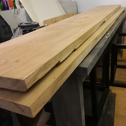 Pari vuotta ollut lämpimässä varastossa, päädyssä saattaa olla halkeamaa jonkun matkaa. Mitat n. 155cmx29cmx5.5 cm. Leveät sivut höylätty, kapea toinen kuoripinnalla. Löytyy kaksi noilla mitoin. 150e/kpl.
