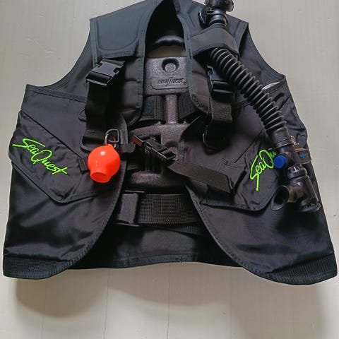 Hyvin vähän käytetty virheetön ammattilaistason tasapainoitusliivi integroiduilla pikairroitettavilla painoilla sekä integroidulla SeaQuestin vararegulaattorilla --> 1 letku vähemmän. Mukana 10kpl 2 paunan vinyylipainoja sekä alkuperäinen tyhjennys-/täyttöletku. Edessä velcroläpällinen ja vetoketjullinen pienvarustetasku. Kyljissä isot velcroläpälliset varustetaskut. Runsaasti metallisia D-renkaita varusteiden kiinnittämiseen liiviin. Koko M-L. Koko säädettävissä ruuvikiinnitteisellä cummurbundilla. Nouto tai postikulut 10€