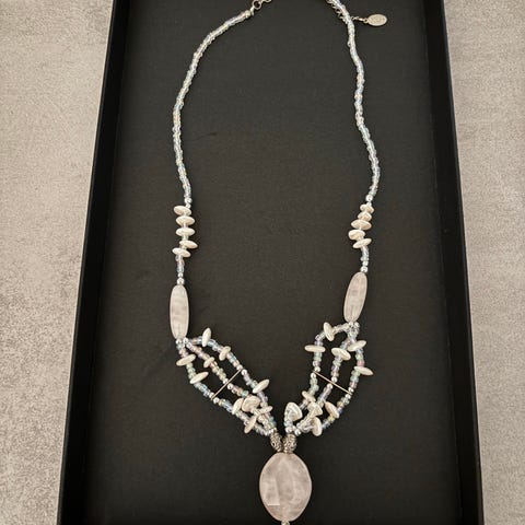 Myydään musta, näyttävä monikerroksinen kaulakoru. Pituutta voi säätää. Ostettu H&M.