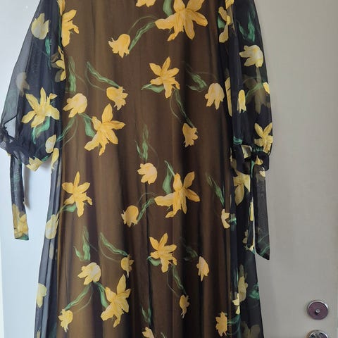 Laadukas kesämekko. Mekossa on kirjava kuviointi mustan ja valkoisen sävyissä. V-aukko ja lyhyet hihat, vyö. Sopii erilaisiin tilaisuuksiin ja arkeen.