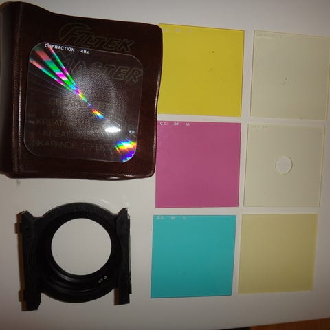Käyttämättömät suodattimet. Vain keltainen ollut käytössä ja puuttuu tästä sarjasta. Huomioitu hinnassa.