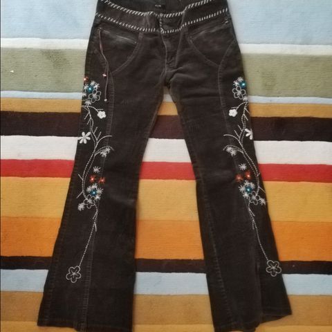 Yhteishintaan kahdet mustat housut, joissa kimalletta. Koko L.