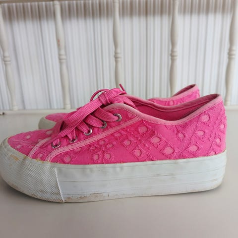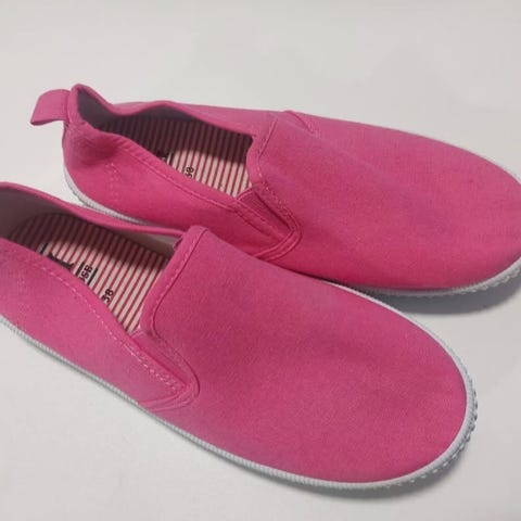 Myydään pinkit uudet, käyttämättömät kangaskengät.
