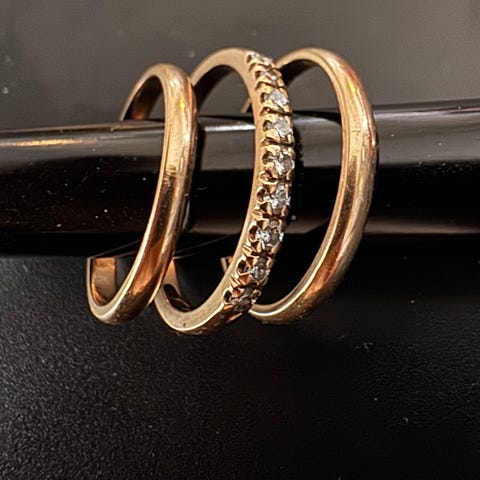 Keltakultainen 14 k rivitimanttisormus, kauniisti valossa säihkyvät n. 0,02 kokoiset timantit. Hyvä käyttösormus. Nouto Heinola tai postikulut ostajalle. Paljon kauniita koruja myytävänä, katso nimeni alta muut kohteet.