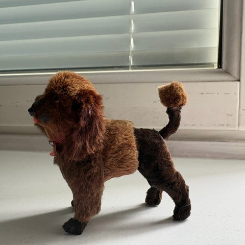 50-luvun lelukoira. Purutäytteinen musta villakoira lelu. Kork 41cm. Pit 34cm. Pysyy napakasti pystyssä. Hyväkuntoinen ja leikkimätön. Hinta sis postituksen seurantakoodilla. Kouvola