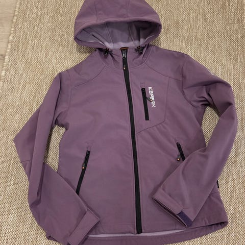Kaksi uutta Icepeakin mustaa softshell -takkia, kuvassa 176cm. Toinen koossa 38.