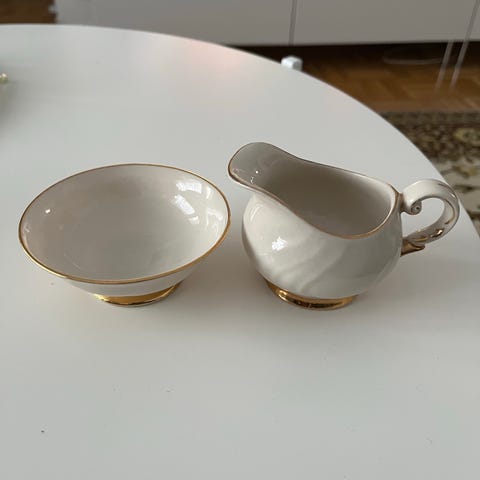 Arabian Kultakoriste leipä/pullalautasia. 5 kpl on kruunuleimalla ja 7 kpl on Made in Finland leimalla. Nämä 7 kpl on pohjaväriltään luonnonvalkoiset, kun ne 5 kpl ovat puhtaan valkoiset. Halkaisija n.17cm. Täysin uudenveroiset! Hinta 4 €/ kpl. Jäljellä 6 kpl Made in Finland leimalla. Ei Toridiiliä. Nouto tai Matkahuollon lähetys.