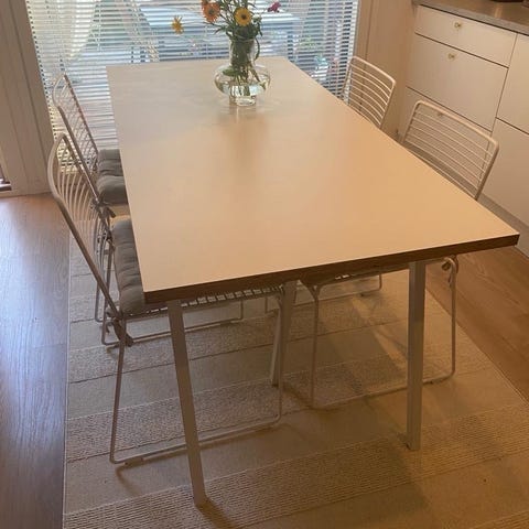 Myydään valkoinen WM String Lounge Chair. Kunto hyvä, yleisilme siisti, mutta jalkojen maalipinnassa pientä kulumaa, joka näkyy kuvissa. Yksi ruuvi puuttuu istuinosasta, näkyy kuvassa. Vain nouto.