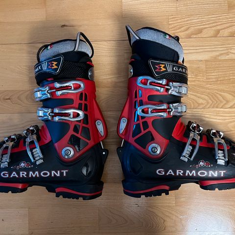 Myydään useamman vuoden vanhat Garmontin vapaalaskumonot. Käytetty, mutta hyvässä kunnossa ja toimivat. Solkikiinnitys sekä laskuasennosta säätöjen vapautus kävelyasentoon pikalukolla. Koko 44.5 jalkaan. Mondopoint 285