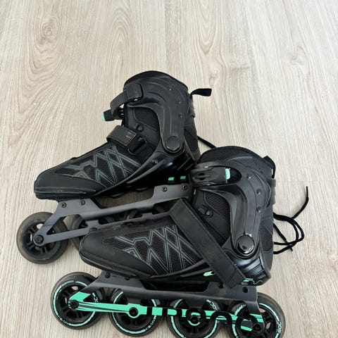 Renkaat 80 mm Bauer V-Tech. Laakerit ABEC 5. Kantajarru oikeassa kengässä.