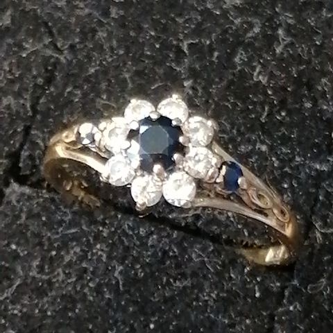 Symmetrinen, hyvärakenteinen ja sanalla sanoen upea kultasormus. Kiveä en lähde arvuuttelemaan :)