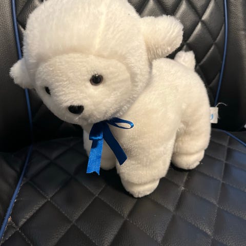 Valkea, puhdas, siisti, ehjä ja hyväkuntoinen lammas pehmoeläin. Sopii hyvin vaikkapa unikaveriksi. Korkeus istuessa 30 cm.