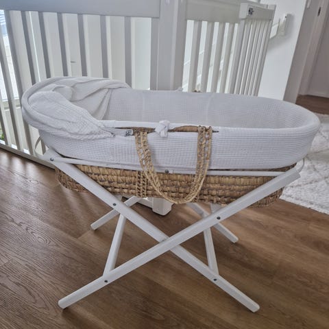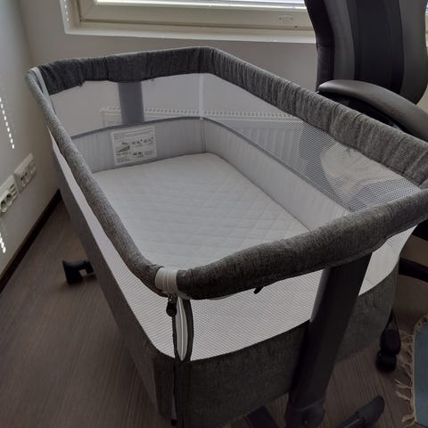 Kaunis sänky jota voit siirrellä mukana ja pitää vauvan lähellä / rauhassa. Rullilla siirtelet sänkyä helposti.