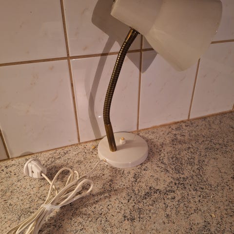 Vanha valaisin. Hyvin toimii. En osaa sanoa kuinka vanha valaisin on, mutta on ostettu huutokaupasta useampi vuosikymmen sitten.