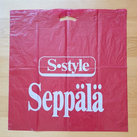 Mega Epe's muovikassi.Sangat retkahtaneet.Koko 40x36.