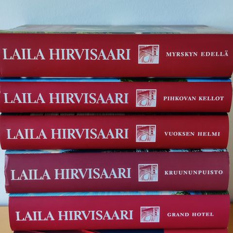 Kuvan mukaiset Laila Hirvisaaren (ent. Hietamies) romaanit 9 kpl siistit, puhtaat ja hyväkuntoiset. Nouto ja käteismaksu tai lähetyskulut 13euroa