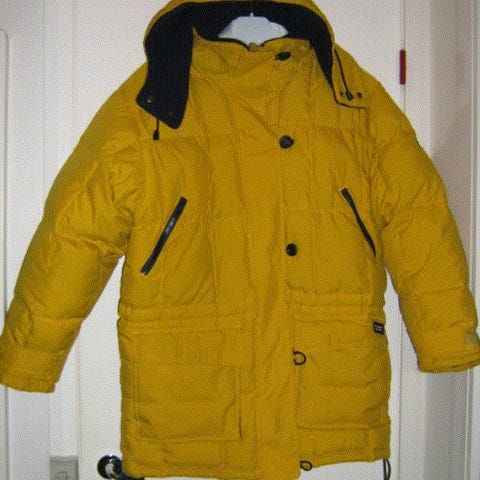 Kerran käytetty, uudenveroinen takki, jossa 90% untuvaa, 10% höyheniä.