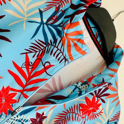 - Kuvioina pionit, esikot ja liljat. Kukkien räjähdys kesän kunniaksi. Kevyt ja mukava vaate polkemiseen tyylillä.