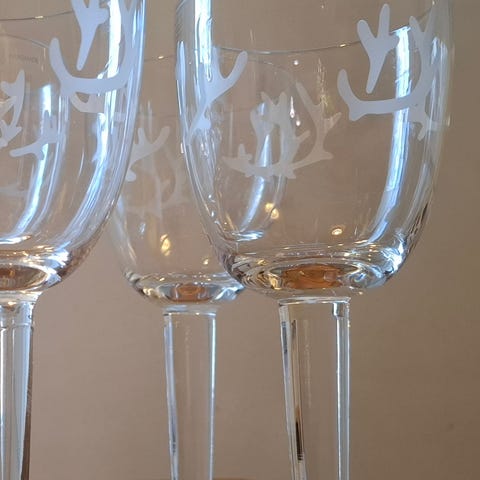 Ostan hyväkuntoisia viinilaseja Pentik Saaga sarjaan. Laseissa kuvan mukainen poronsarvi kuvio. Laseja on kolmea eri kokoa, joten laitathan tiedon korkeudesta viestiisi, kiitos! Kuvassa vasemmalta oikealle lasien korkeus ja halkaisija ovat noin: 18,5/8,8, 18,5/8 ja 19,5/8,5 cm.