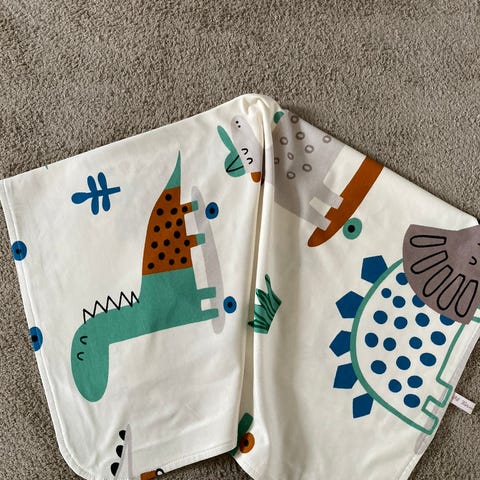 Kuvan mukainen uusi itse valmistettu trikoopeitto.Koko noin 77cm x 98cm.