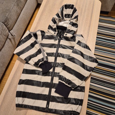 Racoon uudenveroinen takki. Kokoa 122 mutta reilua kokoa, menee varmasti vielä 128 kokoa käyttälle. Sisäpuolella fleece vuori. Käy ainakin nollakeleille asti mielestäni.