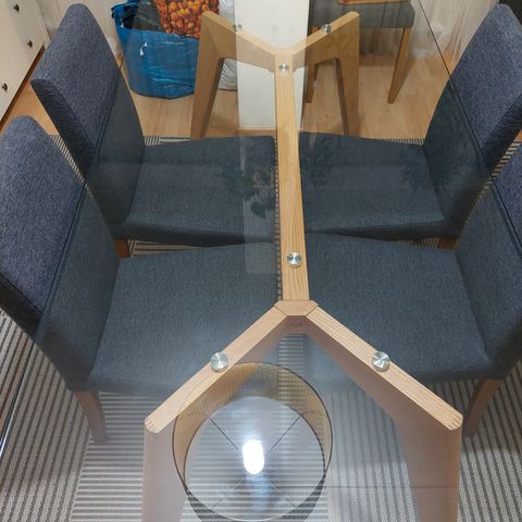 Myymme hyvässä kunnossa ruokailuryhmä, käyttö kulumia on vähän ja pöydän lasissa on käyttö naarmuija muuten hyvän näköinen ja laadukas Askon pöytä.
