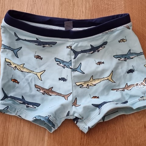 Poikien uimahousut 120 vm. Turkoosin siniset kivalla kuningas linnun kuviolla. Pesty vain hajuttomilla pesuaineilla. Meillä ri eläimiä.
