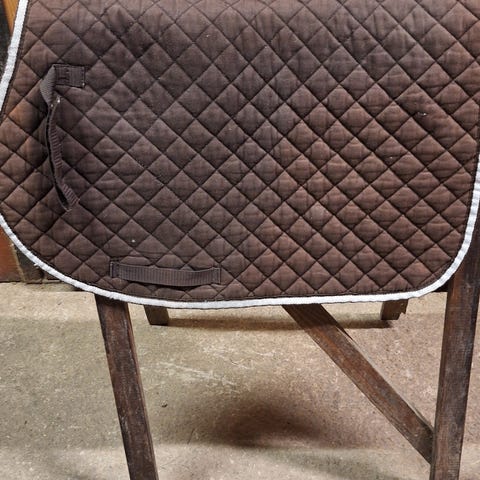 Satulahuopa on erinomaisessa kunnossa ja siinä on hieno, mutta simppeli reunus. Satulahuopa on kaikin puolin ehjä ja se on pesty. En löydä mitään huomauttamista siitä. Satulahuopa on ponikokoinen.
