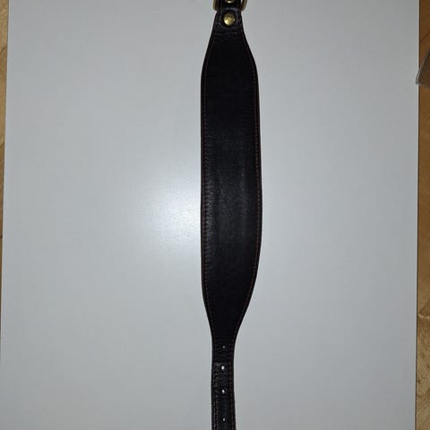 Kovin vähän käytetty Joken musta nahkapanta, jossa molemmin puolin valkea reunus. Kokonaispituus 55 cm, isoin kiinnitys reikä 51 cm:n kohdalla, pienin 36 cm:n. Leveys 2,5 cm:ä. Jokke-logo heijastavalla pohjalla, se on vähän rispaantunut.
