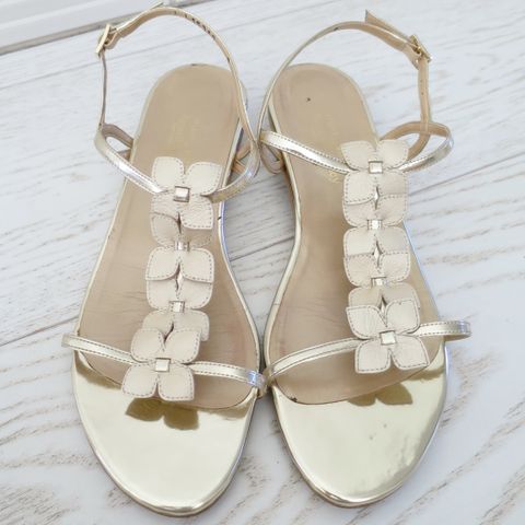 Myytävänä huippulaadukkaat juhlakengät. Ollut kerran päällä vanhoissa tansseissa. 100% nahka, edessä koristeltu kivillä Swarovski. Korko 7 cm. Tyylikäs väri aluminum chantilly lace. Ostetuu 395 eurolla.