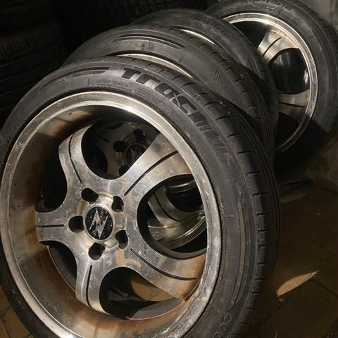 Neljä kappaletta hyväkuntoisia 17" Barzetta Variante vanteita. Yhdessä vanteessa kuvassa näkyvä pieni jälki. Päällä sakkokuntoiset kesärenkaat. Leveys 7,5". Offset ET: 40. Valmistajan tuotekoodi: BARY396.