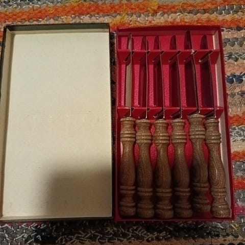 Hedelmäveitset 6kpl ja seinäteline. Veitsen pituus: 17cm. Uniikki sarja. (Nouto tai postituskulut lisätään hintaan).