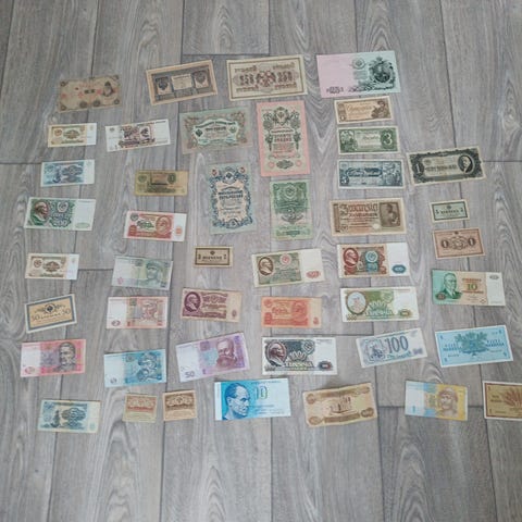 Myydään ulkomaalaiset setelit ja kolikot siinä kunnossa kun ne ovat. Nouto Hattulasta tai ostajalle postikulut.