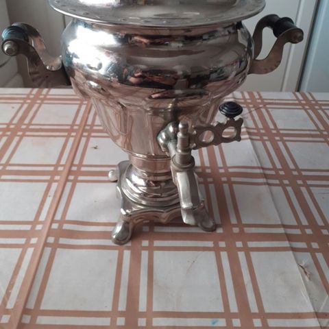 Käyttämättömiä, vain koristeena olleita samovaareja.