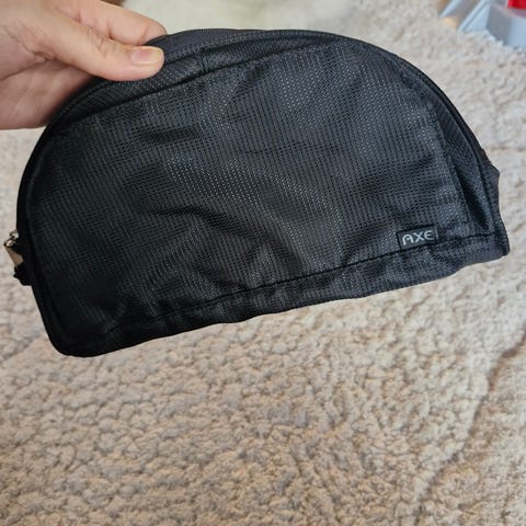 Lorealin men expert hygieniatarvikepussi. Myyntiin tarpeettomana. Hyvässä kunnossa, toki käytän jälkiä, normaalia kulumaa näkyy taitekohdissa. Ei haittaa käyttöä, eikä ole silmiinpistävä.