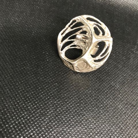 Myydään näyttävä Karl Laineen Hämähäkinverkko sormus, hopeaa (leima 925). Vuodelta 1974. Sormuksen koko on muokattavissa avoimen rungon ansiosta. Koruosan halkaisija 28 mm. Sormus on hyväkuntoinen.
