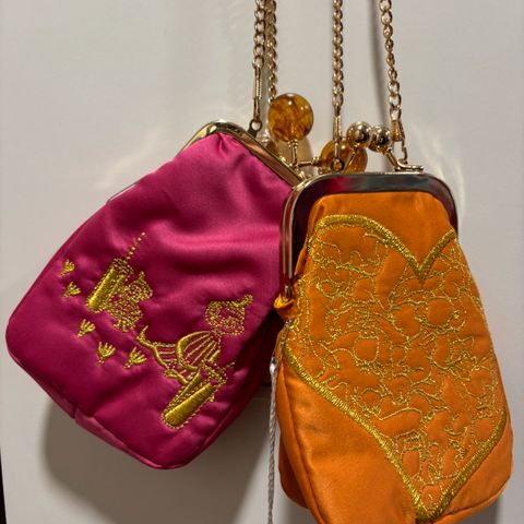 Laukku päältä tumman sininen satiini.