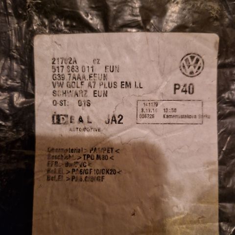 Vw golf takatilan matto. Ollut vm 2006 golfissa.